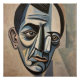 Cubist portrait depicting a male face broken down into geometric shapes in shades of blue and gray. The work presents a melancholic expression through angular features and a multiple perspective typical of the cubist style.