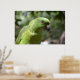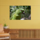 A stunning close-up portrait of a vibrant green parrot from Guatemala, with orange-red eyes. Perfect for bird lovers, tropical art enthusiasts, and anyone who appreciates the colors of nature. Bring a touch of green into your home with this striking wildlife photograph.