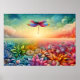 This vibrant painting captures a colorful dragonfly freely soaring over a meadow adorned with a sea of radiant flowers. Its delicate wings carry it gracefully through the blossoms, adding splashes of brilliant hues to the scenery, creating a dreamlike portrayal of freedom and vitality.