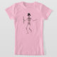 An elegant, white skeleton is captured in a dynamic dancing pose, complete with a classic black top hat, a stylish black bow tie, and a black cane held in its right hand. The figure stands on a stark white background, emphasizing its clean, refined look.