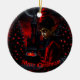 The dark christmas time. Christmas elf in the shadow of the gothic christmas night whose pointed ears protrude from his shimmering mane like the delicate leaves of an old tree stands in the dim twilight of a gothic cathedral, where shadow and light are interwoven in an eternal dance. A Christmas tree, decorated with red ornaments, rises majestically in the background