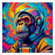 A chimpanzee dressed as an astronaut gazes thoughtfully into space.