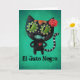 Another Dia de Los Muertos art this time is all about cats. This cute cat with red rose attached behind its ear and wonderful sugar skull makeup is ready for Day of The Dead celebration. This Mexican cat is perfect idea for gifts for cat lovers.