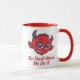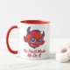 Vector cartoon illustration of a devilishly cute little devil with big eyes with The Devil Made Me Do It text. Keywords: devil, hell, cute, demon, evil, satan, halloween, monster, horns, horror, adorable, sweet, devilishly, devilish, precious, endearing, lovable, lovely, appealing, engaging, delightful, dear, darling, winning, winsome, charming, enchanting, attractive, pretty, adorbs