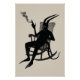 Dark humor wall art featuring the devil relaxing in a rocking chair with a cigarette, watching humanity self-destruct without his help. A satirical sketch for bold minds.