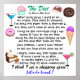 Don't EVEN get me started ... ; ) I never really had to seriously diet although I never could just eat everything. Now, I'm hearing, "Well, our bodies shift as we get older .... Once you pass a certain age, it's harder to lose weight ... blah blah blah." I do know several things I do wrong. One, I eat extremely late; yet, if I eat earlier, I go to sleep and get nothing done. So, what's with the theory that you shouldn't eat after a certain time? I figure I'm burning off all the calories before dinner. Oops, I don't eat all day, so yes, I know, my body is saying, "Store the fat. She's starving us." I could write a book here; yet, I will add that a major mistake I make is eating double dipped chocolate covered peanuts on the rare occasions I'm alone and want to read a mystery, so ... I can either give up those wonderful moments and reading ... or say, "Life's too short to not indulge every now and then!" (Of course, I go to sleep while eating them and reading ... and I can't begin to tell you what a mess that is ...."... SO .... Enjoy ! (Copyright 2009. Poetry: The Diet. Registered copyright held by author Sharon Rhea Ford. Any reproduction or resale will be a copyright violation under copyright law.)