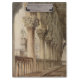 This design features painting in the style of Romanticism by John Ruskin. It shows the loggia (outdoor corridor) of the ducal palace in Venice, residence of the city-state's Doge; Saint Mark's Basilica is visible in the distance. John Ruskin was one of the most important and influential figures in nineteenth-century art, and he had a lasting love for Venice; he produced a lengthy study of its history and architecture titled "The Stones of Venice".