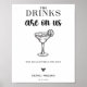 the drinks are on us sign, wedding open bar sign, elegant wedding drink sign, bar signage wedding script, modern wedding bar decor, printable bar sign wedding, custom cocktail hour sign, black and white bar sign, stylish wedding drink station, calligraphy bar signage wedding