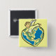 This design features an angel holding onto the earth designed in a heart shape. The earth shows green for land and a blue for the oceans. The angel is dressed in white and equipped with a set of wings. He's overlooking our earth. These buttons come in an assortment of styles and sizes. The backround can be customized to any color or pick a backround already shown.