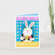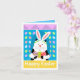 A sweet cat helping out the Easter Bunny! Colorful card sure to please someone special.