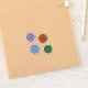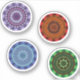 Water, fire, earth, and wind themed concentric circle mandalas come together in this colorful design. Each features a similar center and outer layer with the others being appropriate to the element.