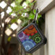 Water, fire, earth, and wind themed concentric circle mandalas come together in this colorful design. Each features a similar center and outer layer with the others being appropriate to the element.