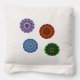 Water, fire, earth, and wind themed concentric circle mandalas come together in this colorful design. Each features a similar center and outer layer with the others being appropriate to the element.