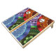 Natural Wood Cornhole Set, Yellow and Purple bags