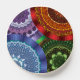 Water, fire, earth, and wind themed concentric circle mandalas come together in this colorful design. Each features a similar center and outer layer with the others being appropriate to the element.