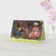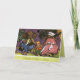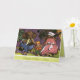 This drawing is of a family of elephants sitting around on stools in the woods. A father, mother and baby elephant dressed in outfits and hats. This card comes with a nice saying or customize with your own saying. A matching envelope can be bought as well.