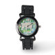 The gentle giant of the jungle in a tableau that includes a crocodile, a monkey,a butterfly and a waterfall. Glitter watch straps in red, pink or silver.
