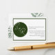 The Emerald Wedding enclosure RSVP card is an elegant card featuring lush greenery with black font. This can be customized for your special day. Please see the Green Collection for other designs and coordinating items for your special day.