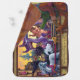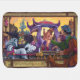 The Emperor’s New Clothes bold and colorful original art painted by our talented children’s illustrator, Traci Van Wagoner, shows the Emperor parading through town in all his new suit glory (with a curtain strategically covering his private parts) in his carriage being pulled by two beautiful horses, one black and one white. A man and his son and dog are watching with the boy pointing out that the Emperor has nothing on at all. Anyone who loves fantasy and fairy tales will love this artwork.