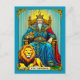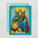 Postcard in a tarot-inspired design featuring "The Emperor" seated on a throne, crowned and robed in regal blue and red. A powerful lion sits by his side, symbolizing strength and authority. The card symbolizes stability, leadership, and discipline.