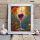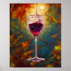 Poster / wall art print featuring an artistic wine glass filled with an enchanting red wine. Digital watercolor created using AI generating software.