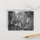 A vintage black and white photograph of soldiers and civilians in the street celebrating the end of World War Two.