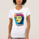The material is a great quality that is hard to find with most tee shirts. Fabric was not see-through or thin at all, but was also very soft and comfortable. The shirt description states that it runs a little small, so I sized up one size for a perfect fit! I would definitely buy this type of tee shirt again because I love the fit and high quality fabric that I cannot find anywhere else. The printing was perfect and just as pictured. Loved the cute quote and really enjoy the tee in both the quality and design. I love quirky typography designs and funny quotes and I am extremely pleased with the overall quality and value I get at Zazzle!