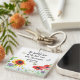 The faithful love of the Lord never ends. His mercies never cease. This beautiful key chain with red and yellow flowers evokes happiness. The Bible verse is in black.