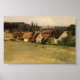 A tranquil setting from Theodore Robinson depicting a quaint European countryside red roofed farmhouse and field.