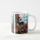 This photo is a picture of a feast laying out on a table. Light coming through the window shows ice on the window. A variety of vegetables, fruits and desserts are ready for the celebration. These mugs come in an assortment of styles, colors and sizes.
