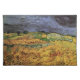 The Fields by Vincent van Gogh is a vintage fine art post impressionism landscape nature painting. A dark and stormy night sky over field of wheat on a farm. Clouds are swirling for the rain storm.