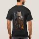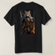 The "Fighter Cat" T-shirt features a powerful and agile feline, symbolizing strength and resilience. The cat is depicted in an action pose, with intense eyes glowing with determination. Its sleek, muscular build is complemented by combat gear, such as gloves and a headband, embodying the spirit of a fearless warrior. The background incorporates dynamic elements like motion lines or glowing patterns for a bold and modern look. The title "Fighter Cat" is displayed in bold, futuristic typography, with vibrant accents like red, white, or neon to create contrast against the black fabric. The design includes a stylish end tag, "Detail End," to add a professional touch.