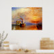 The Fighting Temeraire Tugged to Her Last Berth to be Broken Up, 1839 by J. M. W. Turner ( Joseph Mallord William Turner ) The painting depicts one of the last second-rate ships of the line which played a distinguished role in the Battle of Trafalgar in 1805, the 98-gun ship HMS Temeraire, being towed towards its final berth in east London in 1838 to be broken up for scrap. Joseph Mallord William Turner (1775 – 1851) was an English Romantic landscape painter, watercolourist and printmaker. Turner was considered a controversial figure in his day, but is now regarded as the artist who elevated landscape painting to an eminence rivalling history painting. Although renowned for his oil paintings, Turner is also one of the greatest masters of British watercolour landscape painting. He is commonly known as "the painter of light" and his work regarded as a Romantic preface to Impressionism. The painting hangs in the National Gallery, London, having been bequeathed to the nation by the artist in 1851. Sir Henry Newbolt wrote a fine ballad on this great ship (eponymously titled), referencing the scenario depicted, evocating its grand history: "And she's fading down the river, But in England's song for ever, She's the Fighting Téméraire."