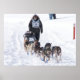 A photo of one of the dog sled teams coming in after a long and snowy UP 200.