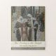 Design features a reproduction of the painting, "Jesus Found in the Temple" by artist James Tissot. (1836-1902) Customizable text is displayed below heading, "The Finding in the Temple." Designed to coordinate with the "Great Catholic Art in Puzzles!" collection.