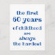 NewParkLane - 60th Birthday Postcard, with funny quote 'The First 60 Years of Childhood are the Always the Hardest', in fun, modern blue script typography.