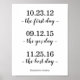 Elegant love story wedding poster featuring the dates of the day you met, the day you got engaged and the day of your wedding.
