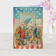 This vintage greeting card shows the first Fourth of July with George Washington and our founding fathers hailing the tattered flag of the cause.