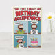 Make their birthday extra fun with this witty "The Five Stages of Birthday Acceptance" card! Featuring a bold, comic-style font and a colorful four-panel comic strip, this design hilariously captures the emotional rollercoaster of getting older. From shock and denial to bargaining with birthday candles and finally accepting it with cake, this playful illustration is perfect for anyone who embraces humor when celebrating another year. Bright colors and expressive characters add to the charm, making this a great card for friends, family, or anyone who dreads adding another candle to the cake!