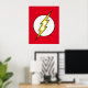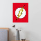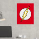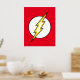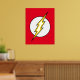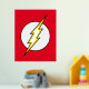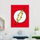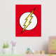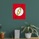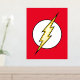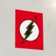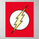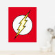 The iconic Flash Lightning Bolt Logo; a yellow lighting bolt running through a white circle on his classic bright red colored background.