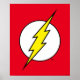 The iconic Flash Lightning Bolt Logo; a yellow lighting bolt running through a white circle on his classic bright red colored background.