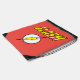 Check out this iconic logo for The Flash, featuring his name in telescopic speed style over the bright yellow lightning bolt in circle icon!