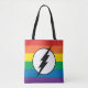 DC Pride | The Flash's iconic logo with layers of rainbow colors inside it.