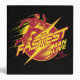 Check out this lightning graphic featuring the Flash running along the words "The Fastest Man Alive".