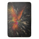 This powerful abstract artwork captures the mythic essence of the phoenix in mid-flight, rising from darkness in an explosion of fire, light, and color. Flames of red, orange, and molten gold burst outward against a deep black background, creating a dramatic contrast that immediately draws the eye. At the core, subtle hints of green and violet add depth and mystery, suggesting transformation, energy, and renewal rather than pure destruction.