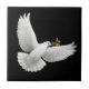 Original fine art painting of a lovely white dove with an olive branch in its mouth by artist Carolyn McFann on a useful ceramic tile for bird fans.