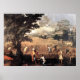 This is a reproduction of “The Four Seasons - Summer” between 1660 and 1664 1634 by Nicolas Poussin. The paimting was one of four produced in Rome between 1660 and 1664, commissioned by the duc de Richlieu, nephew of the Cardinal. They depict Biblical figures at different times of day during the different seasons and were executed when Poussin was in failing health and afflicted with a remor in his hands. They are in their own room in the Louvre. This painting depicts Ruth and Boz in the fields of grain. Poussin was born in Normandy and ran away to Paris when he was eighteen. He moved to Rome when he was thirty in the company of his friend Marino and secured the patronage of the Cardinal Barbarini. He participated in the emerging Roman Baroque style. He returned to France in 1640 and became First Painter to Louis XIII but returned to Rome in disgust at the intrigues of the French Court. He continued to work there but began to decline in health after 1650. He died in Rome in 1664 leaving no children. This masterpiece is an oil on canvas and measures 46.5 by 63 inches. It is in the Musee du Louvre in Paris.