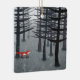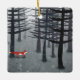 A lone wild red fox stands under pine trees in a dark forest. A landscape painting for animal, nature and wildlife lovers.