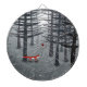 A lone wild red fox stands beneath the pine trees in a dark forest. For nature, wildlife and animal lovers.