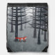 A wild red fox stands among trees in a dark forest. A landscape painting for animal, nature and wildlife lovers.
